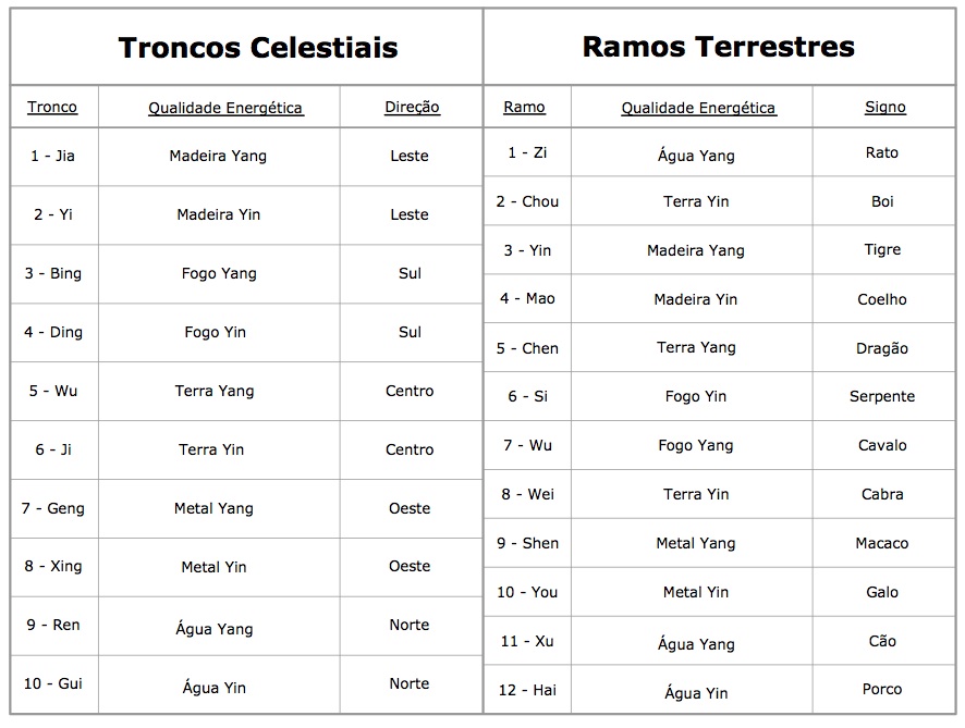 A combinação de Troncos e Ramos sempre acontece entre elementos com a mesma polaridade – Troncos Yang com Ramos Yang e Troncos Yin com Ramos Yin: