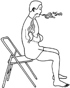 Lentamente vá descendo os braços até a altura da “boca do estomago” enquanto dobra ligeiramente o tronco e se apóia no lado direito, expirando e soprando o som Hsu, enquanto imagina seu figado sendo limpo de todas as impurezas e toda a raiva.