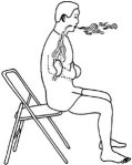 Sentado em uma cadeira,inicie se concentrando no seu figado, que fica do lado superior direito de seu abdomen, logo abaixo das costelas. Inspirando, eleve seus braços, com as palmas das mãos entrelaçadas e voltadas para cima até a altura da cabeça.