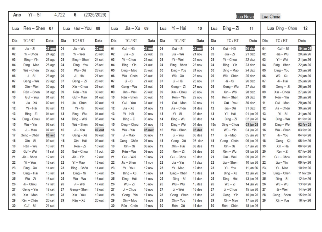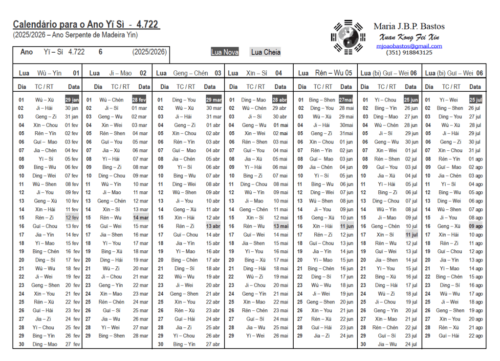 Calendário para o ano Yi Si – 4.722 Deixe uma resposta (2025/2026 – Ano Serpente de Madeira Yin) Screenshot Compartilhe Clique para compartilhar no X(abre em nova janela) 18+ Clique para compartilhar no Facebook(abre em nova janela) Facebook Clique para enviar um link por e-mail para um amigo(abre em nova janela) E-mail Clique para imprimir(abre em nova janela) Imprimir Curtir Carregando... Relacionado